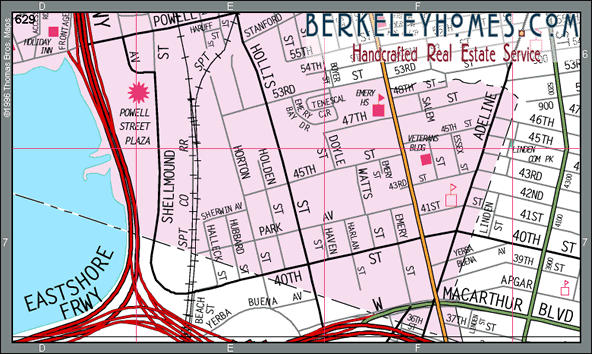is at the corner of Powell and Hollis Streets... right next to the railroad tracks.